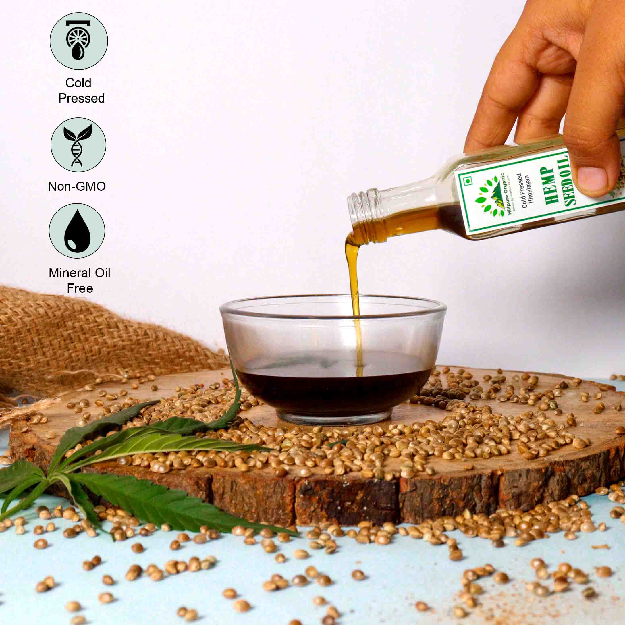 Hillpure Organic Cold Pressed Himalayan Hemp Seed Oil for hair growth, skin care, face, For External Use & Stunning Youthful Looks (65 ml, Glass Bottle, Pack of 2))
