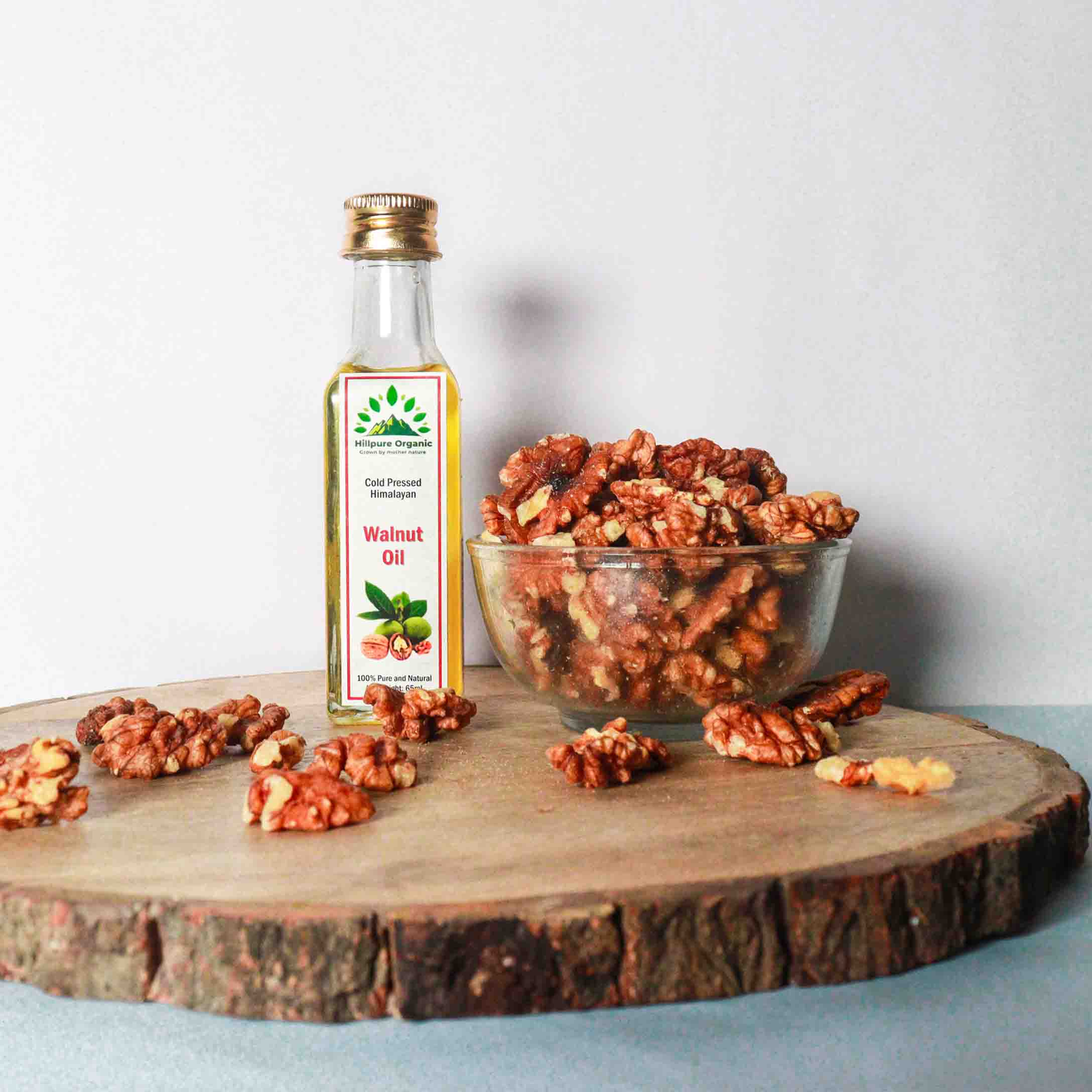 Hillpure Organic Cold Pressed Himalayan Walnut Oil – Extra Virgin – Walnut Oil / Akhrot Tel – 100% Pure & Natural Premium Edible Walnut Oil (65 ml Glass Bottle )